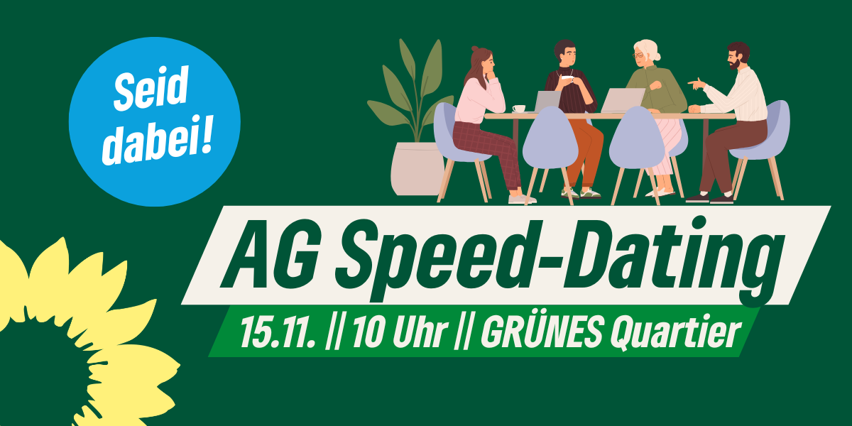 Ihr habt ein Herzensthema und Lust, euch im Kreisverband inhaltlich einzubringen? Dann kommt zu unserem AG Speed-Dating. In drei Runden habt ihr hier die Möglichkeit, mehr über unsere Arbeitsgemeinschaften und deren Themen zu erfahren. Bringt gerne Fragen mit und kommt in den Austausch.
